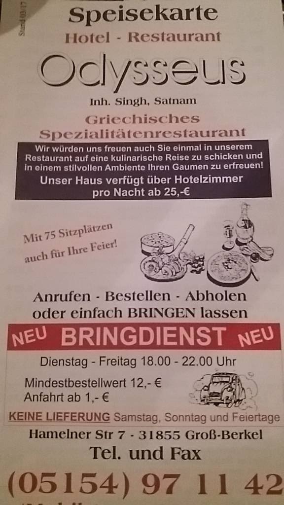 Welcome to Odysseus, a charming Greek restaurant nestled in the heart of Aerzen, Germany. Known for its warm hospitality and friendly service, Odysseus promises an inviting atmosphere where every guest feels at home. Guests rave about the restaurant's commitment to quality, with dishes reflecting authentic Greek flavors alongside familiar German touches.
